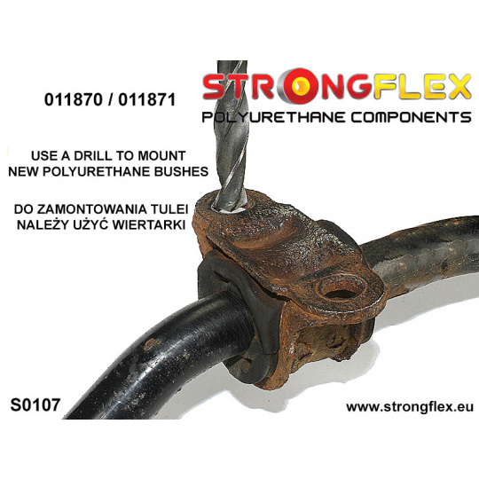 Pro instalaci nového polyuretanového silentbloku musí být svorka stabilizátoru vyvrtána. Neprovrtejte svorku!