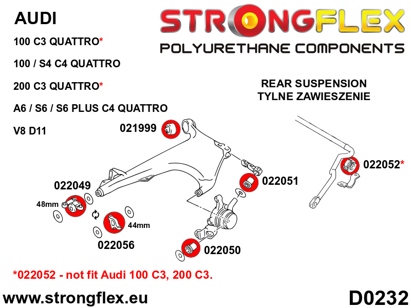 022056A: Strongflex Přední silentblok zadního spodního ramene 44mm varianta SPORT