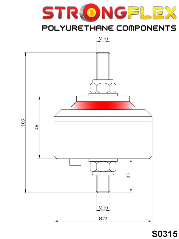 Toto uložení motoru se nejčastěji používá v motorsportu (drifting, 1/4 míle atd.) Díl není ekvivalentní k originálním gumovým dílům. Uložení přenáší vibrace na karosérii. Toto uložení motoru zlepšuje přenos výkonu a zlepšuje odezvu při přenosu výkonu na kola. Upevňovací šrouby M10. Uložení motoru lze také použít v jiných vozech než BMW s výměnou motoru atd.