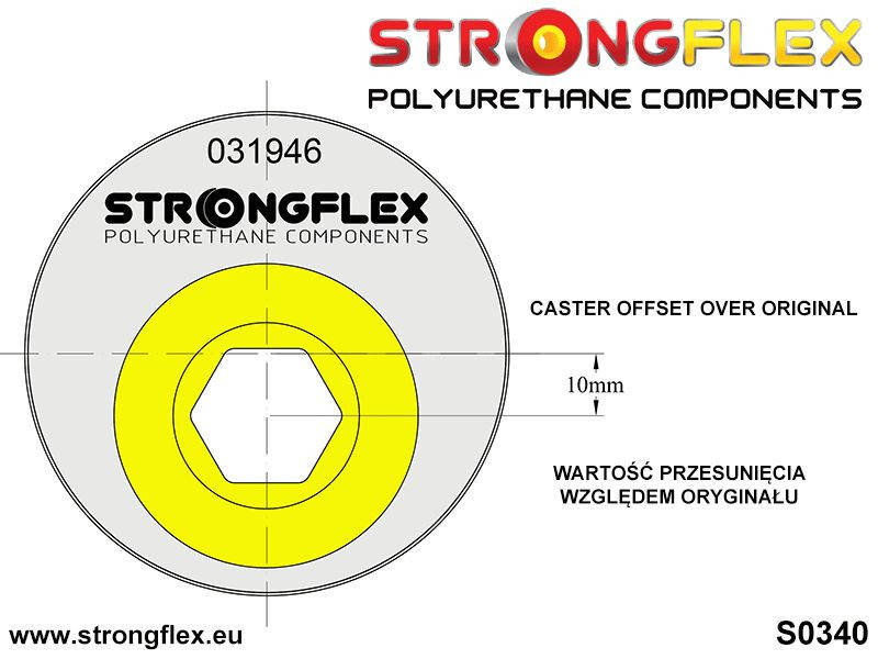 031946A: Strongflex Přední silentblok předního spodního ramene - excentrický 66mm varianta SPORT Yellow