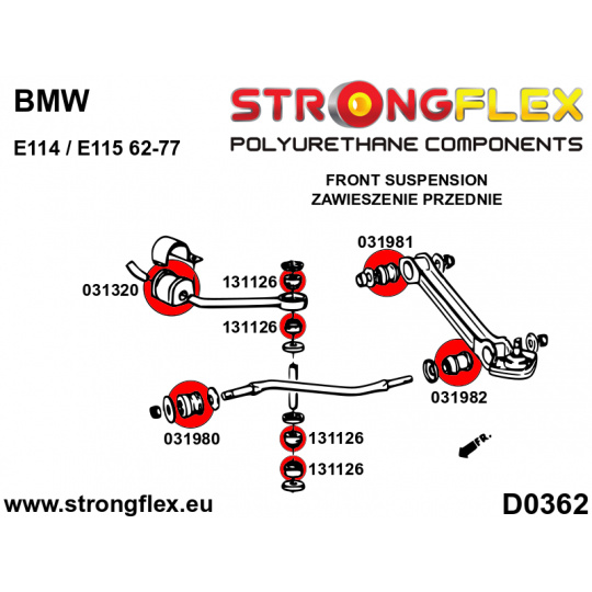 031980B: Strongflex Silentblok přední vzpěry ke karosérii Red