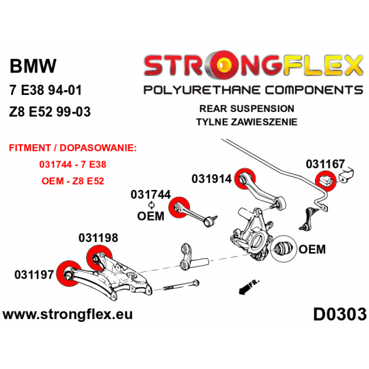 036132A: Strongflex Kompletní sada polyuretanových silentbloků pro zavěšení varianta SPORT