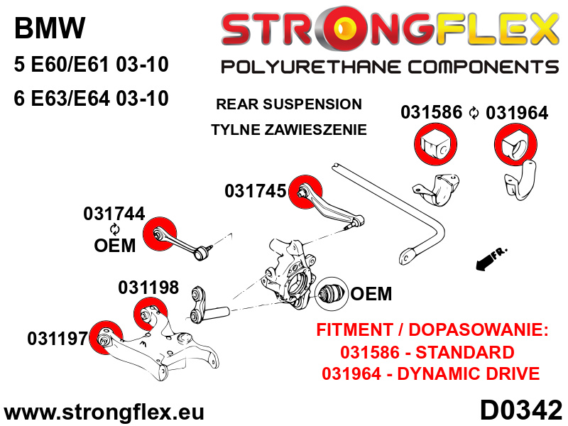 036248A: Strongflex Kompletní sada polyuretanových silentbloků pro zavěšení varianta SPORT