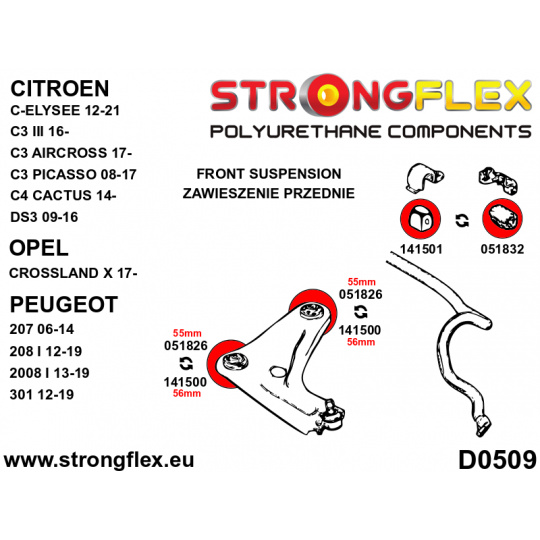 051826B: Strongflex Silentblok předního spodního ramene 55mm