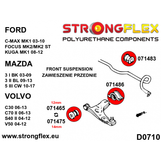 076160B: Strongflex Sada silentbloků předního zavěšení 21mm 071465 - 12mm