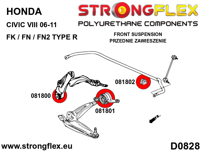 081801B: Strongflex Silentblok předního spodního ramene - zadní Red