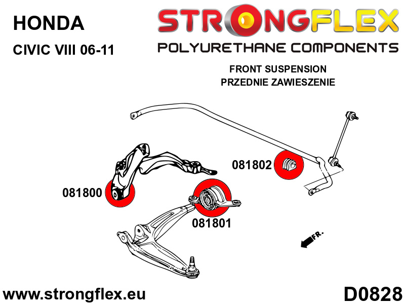 081802B: Strongflex Silentblok předního stabilizátoru 22mm Red