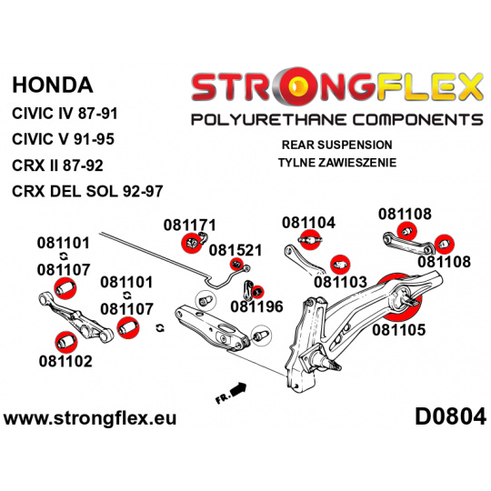 Před nákupem zkontrolujte průměr předního stabilizátoru (081097 18-26mm) a zadního (081171 13mm nebo 081172 15mm). Také zkontrolujte průměr zadního dolního silentbloku ramene (081101 31mm nebo 081107 35mm)