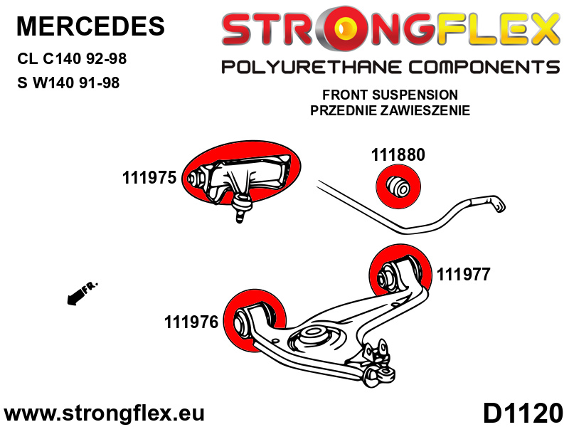 Model E-W210 má dva přední silentbloky stabilizátoru, 111814 nebo 111880.