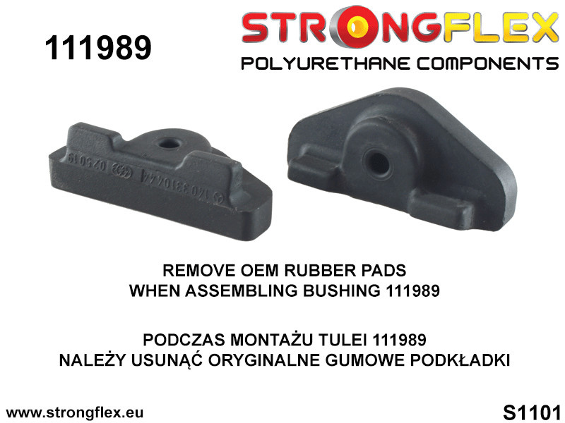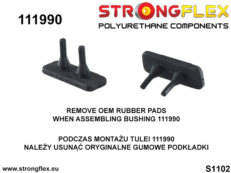 - S1101, S1102 - Při montáži silentbloku odstraňte původní gumové podložky.