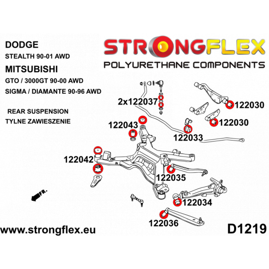 126152A: Strongflex Sada silentbloků zadního nosníku varianta SPORT