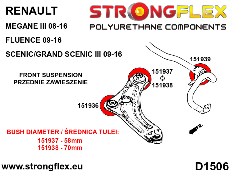 151937A: Strongflex Silentblok předního spodního ramene - zadní 58mm varianta SPORT