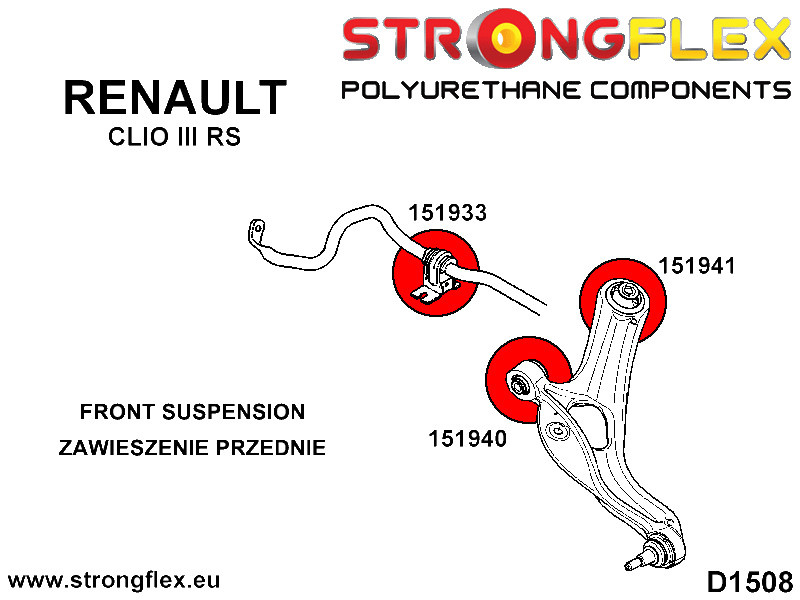 156082B: Strongflex Sada silentbloků předního zavěšení 20,5mm 151933 Red