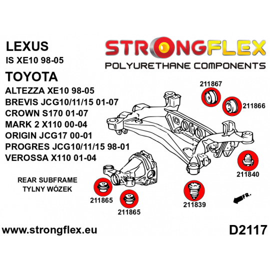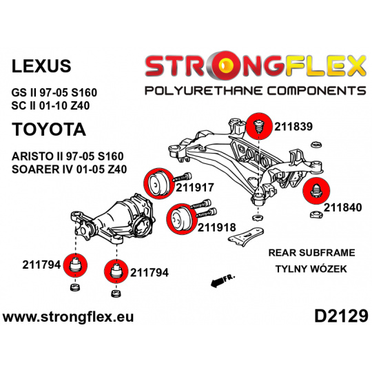 216234A: Strongflex Sada silentbloků zadního nosníku varianta SPORT