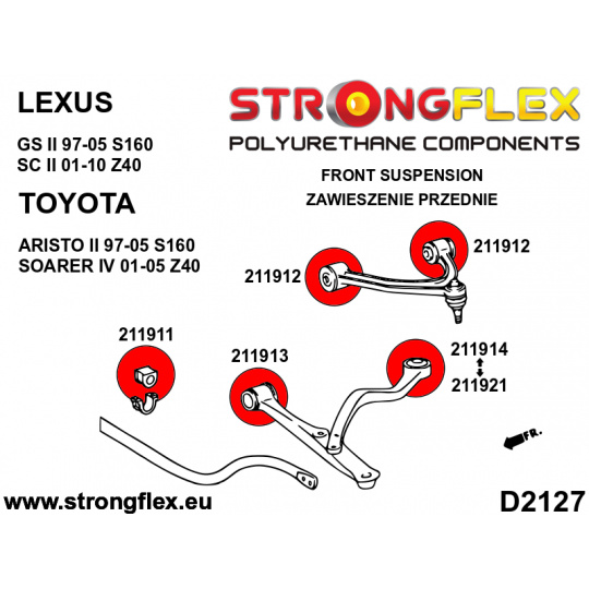 216244B: Strongflex Sada silentbloků předního zavěšení 27mm 60mm -211921 Red