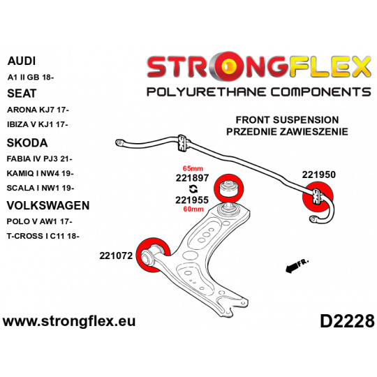 226247A: Strongflex Sada silentbloků předního zavěšení a zadního nosníku varianta SPORT 18,5mm 221897