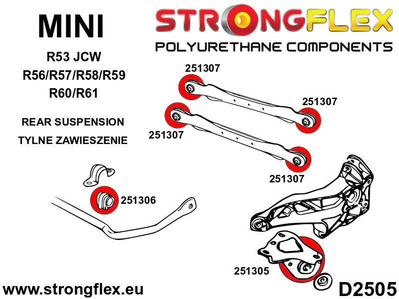 256209B: Strongflex Sada silentbloků zadního zavěšení R53 JCW