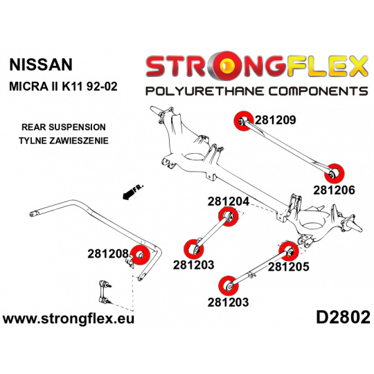 281209B: Strongflex Silentblok zadní Panhardovy tyče k nosníku Red