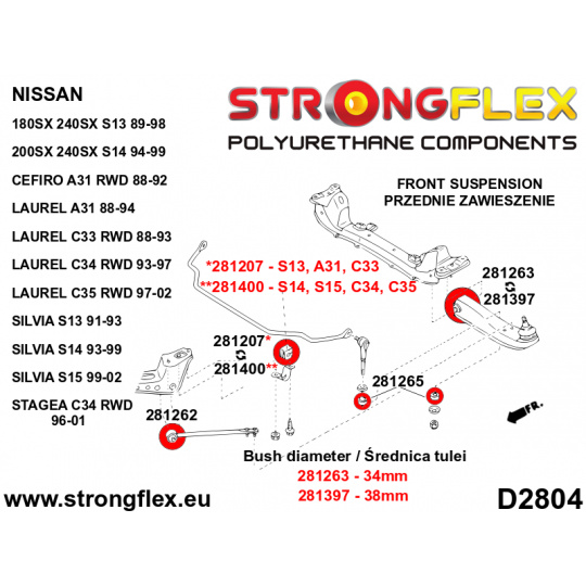 281262A: Strongflex Silentblok předního spodního ramene k karoserii varianta SPORT