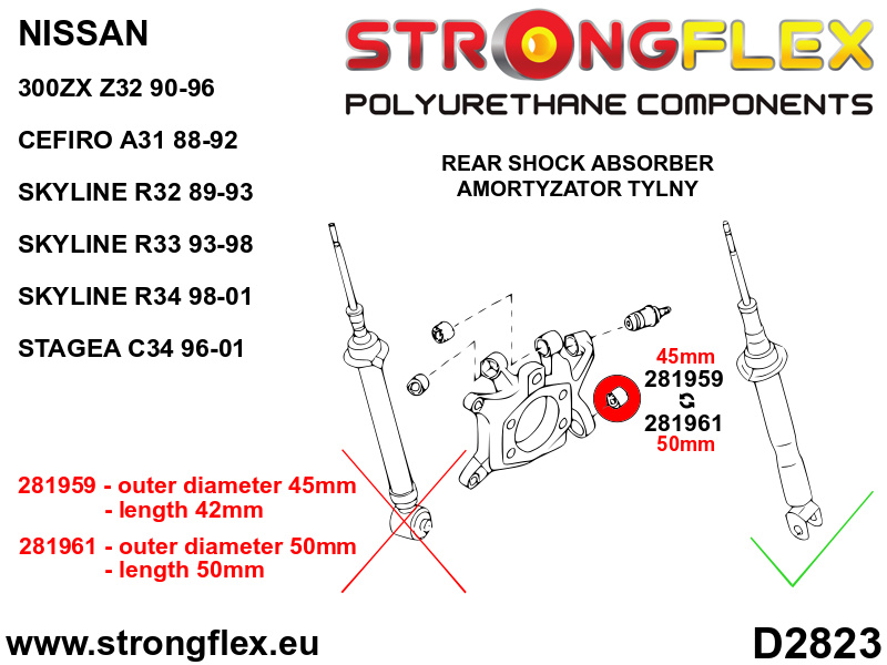nebo - 0/2x 281961A: Silentblok spodního uložení zadního tlumiče 50mm varianta SPORT