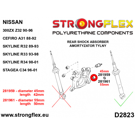 - 281959A nebo 281961A Silentblok pasuje pouze na hliníkové řízení a tlumič s odpovídajícím uložením (viz D2823).