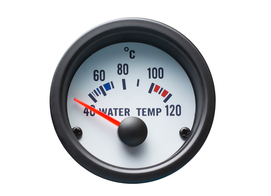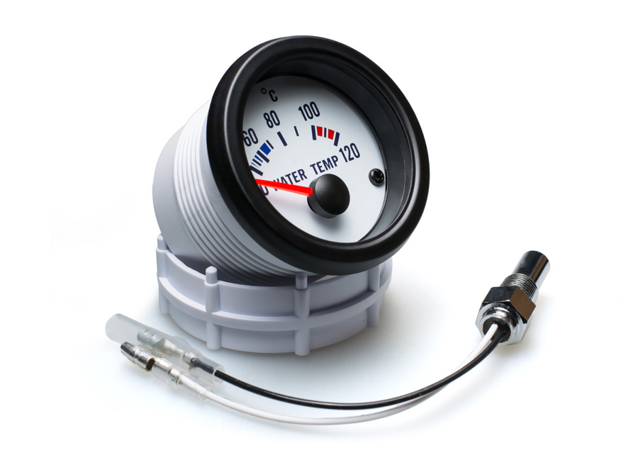 Autogauge palubní přístroj, měřená hodnota: teplota vody, barva podkladu: bílá