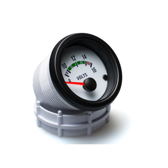 Autogauge palubní přístroj, měřená hodnota: voltmetr, barva podkladu: bílá