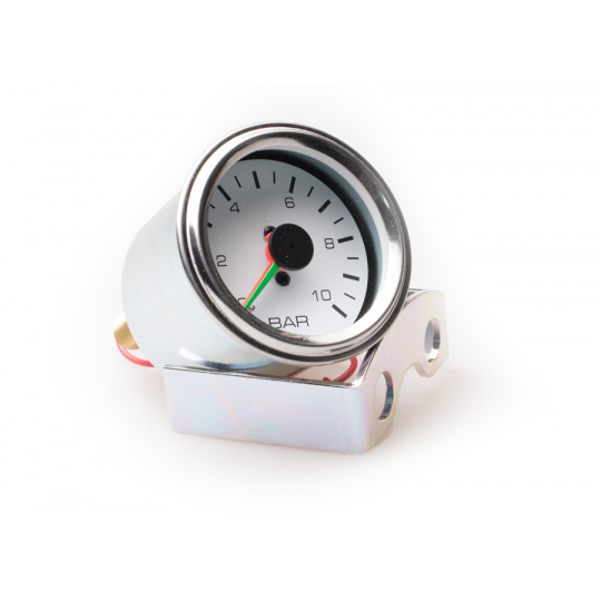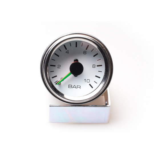 Autogauge přídavný ukazatel tlaku vzduchu dvouručičkový 52 mm, do 10 bar, barva podkladu: bílá