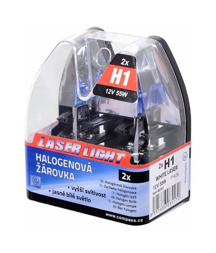 Žárovky White Laser produkují světlo s nádechem bílé barvy, které vytváří xenonový efekt. Skla žárovek mají UV filtr a jsou tak vhodné pro všechny druhy světlometů. Baleno v průhledné krabičce po 2 kusech.