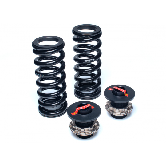 Výška se nastavuje šroubováním celého těla tlumiče, aniž by docházelo ke zkrácení dráhy tlumení nebo změně předpětí pružiny. Rozsah snížení se liší podle typu vozu – od téměř sériové výšky až po extrémní snížení nevhodné pro běžný silniční provoz. - Nastavení tuhosti