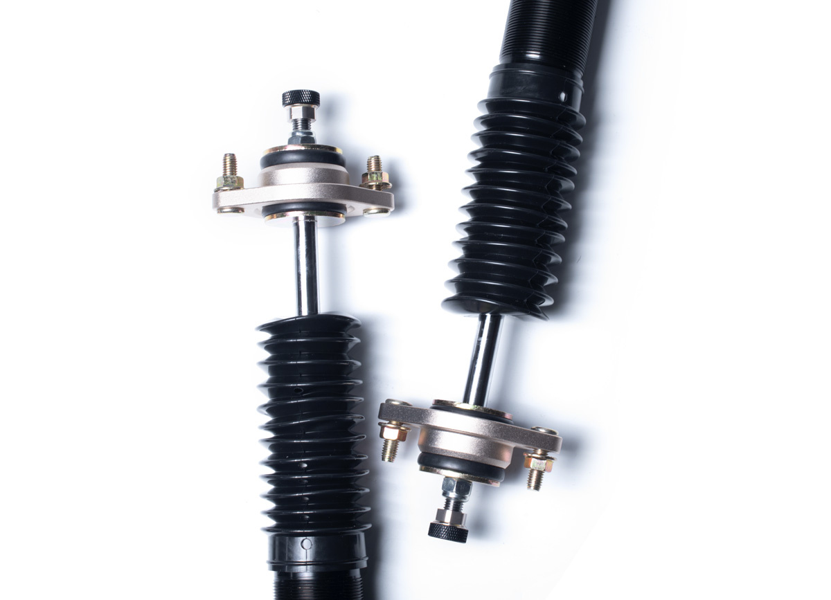 Výška se nastavuje šroubováním celého těla tlumiče, aniž by docházelo ke zkrácení dráhy tlumení nebo změně předpětí pružiny. Rozsah snížení se liší podle typu vozu – od téměř sériové výšky až po extrémní snížení nevhodné pro běžný silniční provoz. - Nastavení tuhosti