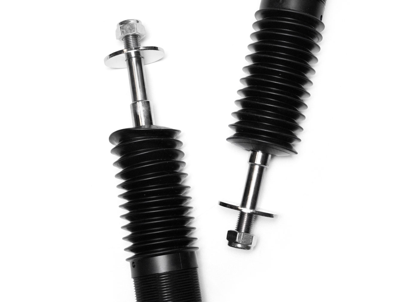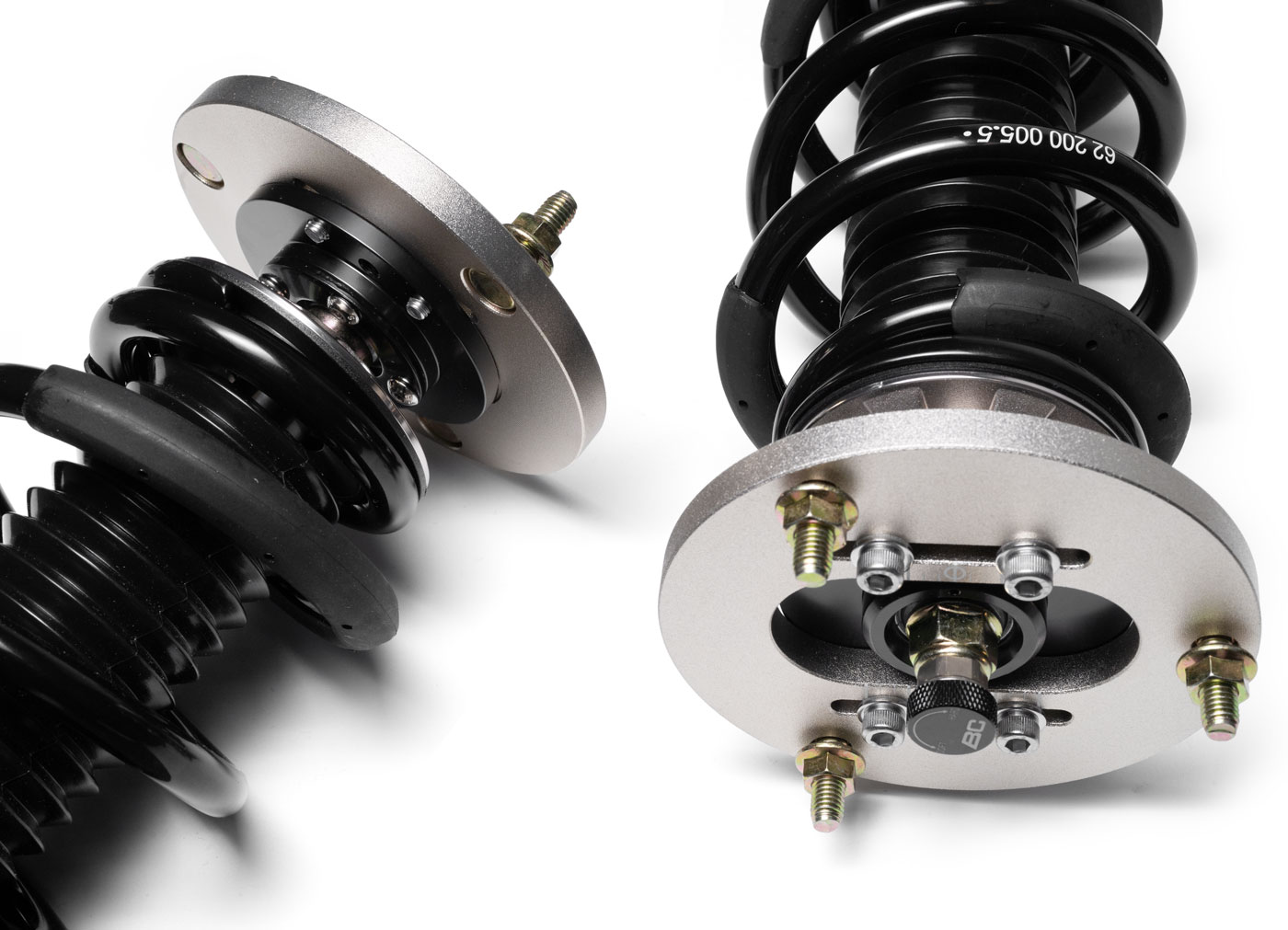 Výška se nastavuje šroubováním celého těla tlumiče, aniž by docházelo ke zkrácení dráhy tlumení nebo změně předpětí pružiny. Rozsah snížení se liší podle typu vozu – od téměř sériové výšky až po extrémní snížení nevhodné pro běžný silniční provoz. - Nastavení tuhosti