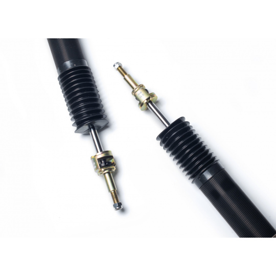 Výška se nastavuje šroubováním celého těla tlumiče, aniž by docházelo ke zkrácení dráhy tlumení nebo změně předpětí pružiny. Rozsah snížení se liší podle typu vozu – od téměř sériové výšky až po extrémní snížení nevhodné pro běžný silniční provoz. - Nastavení tuhosti