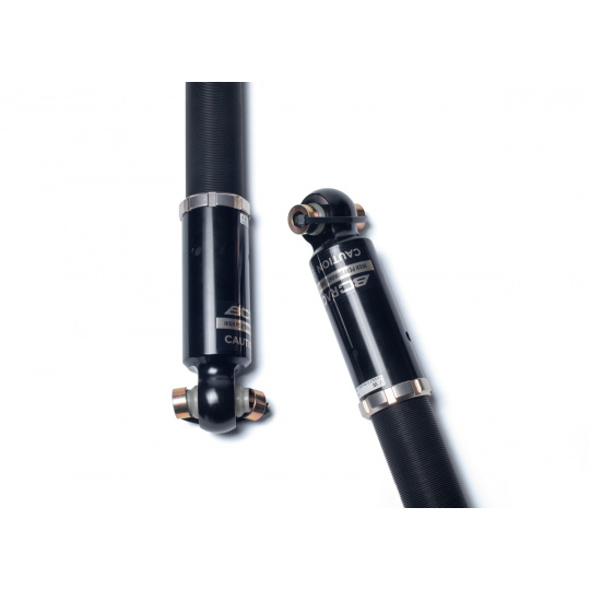 Výška se nastavuje šroubováním celého těla tlumiče, aniž by docházelo ke zkrácení dráhy tlumení nebo změně předpětí pružiny. Rozsah snížení se liší podle typu vozu – od téměř sériové výšky až po extrémní snížení nevhodné pro běžný silniční provoz. - Nastavení tuhosti