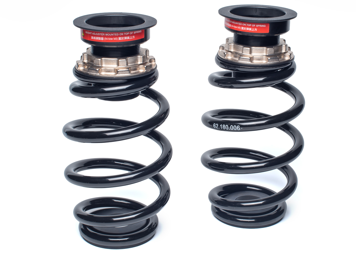 Výška se nastavuje šroubováním celého těla tlumiče, aniž by docházelo ke zkrácení dráhy tlumení nebo změně předpětí pružiny. Rozsah snížení se liší podle typu vozu – od téměř sériové výšky až po extrémní snížení nevhodné pro běžný silniční provoz. - Nastavení tuhosti