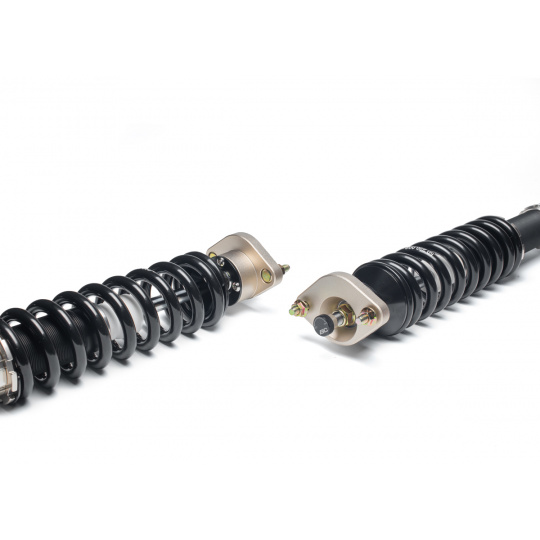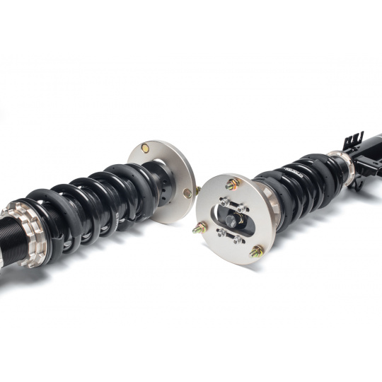 Výška se nastavuje šroubováním celého těla tlumiče, aniž by docházelo ke zkrácení dráhy tlumení nebo změně předpětí pružiny. Rozsah snížení se liší podle typu vozu – od téměř sériové výšky až po extrémní snížení nevhodné pro běžný silniční provoz. - Nastavení tuhosti
