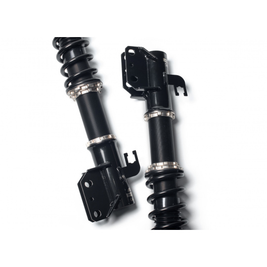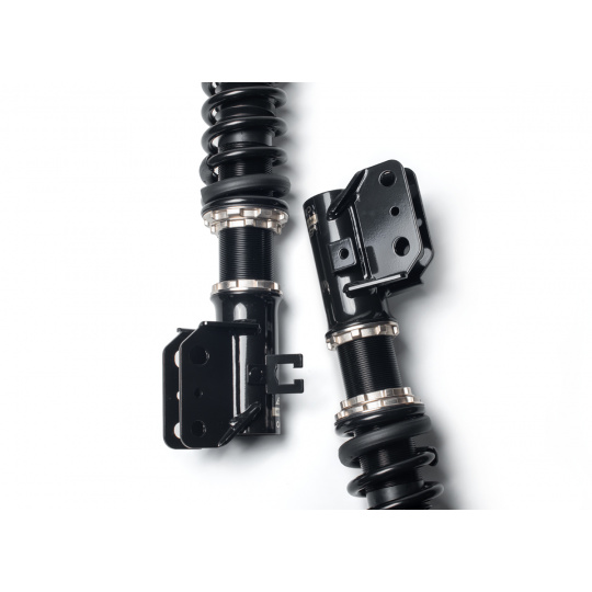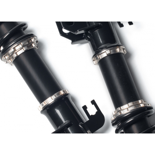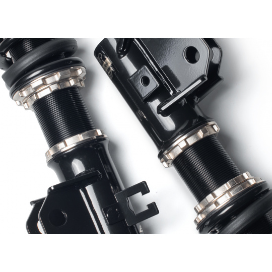 Výška se nastavuje šroubováním celého těla tlumiče, aniž by docházelo ke zkrácení dráhy tlumení nebo změně předpětí pružiny. Rozsah snížení se liší podle typu vozu – od téměř sériové výšky až po extrémní snížení nevhodné pro běžný silniční provoz. - Nastavení tuhosti