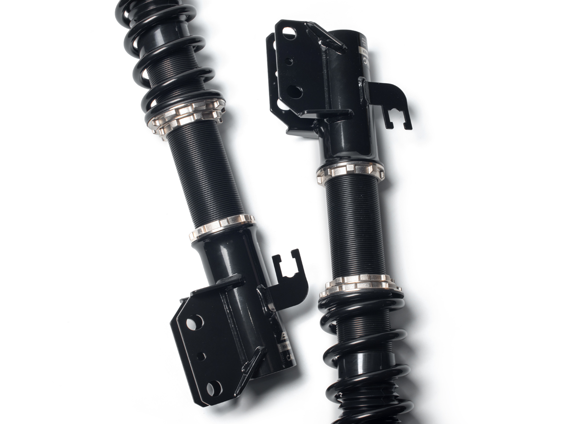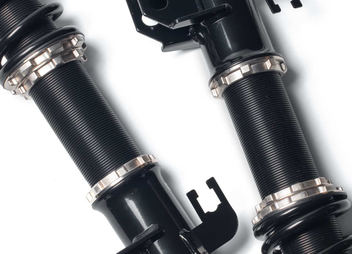 Výška se nastavuje šroubováním celého těla tlumiče, aniž by docházelo ke zkrácení dráhy tlumení nebo změně předpětí pružiny. Rozsah snížení se liší podle typu vozu – od téměř sériové výšky až po extrémní snížení nevhodné pro běžný silniční provoz. - Nastavení tuhosti