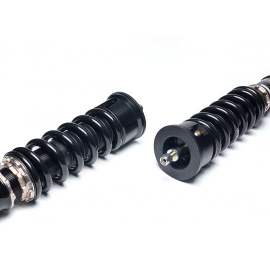 Výška se nastavuje šroubováním celého těla tlumiče, aniž by docházelo ke zkrácení dráhy tlumení nebo změně předpětí pružiny. Rozsah snížení se liší podle typu vozu – od téměř sériové výšky až po extrémní snížení nevhodné pro běžný silniční provoz. - Nastavení tuhosti