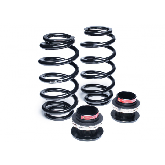 Výška se nastavuje šroubováním celého těla tlumiče, aniž by docházelo ke zkrácení dráhy tlumení nebo změně předpětí pružiny. Rozsah snížení se liší podle typu vozu – od téměř sériové výšky až po extrémní snížení nevhodné pro běžný silniční provoz. - Nastavení tuhosti