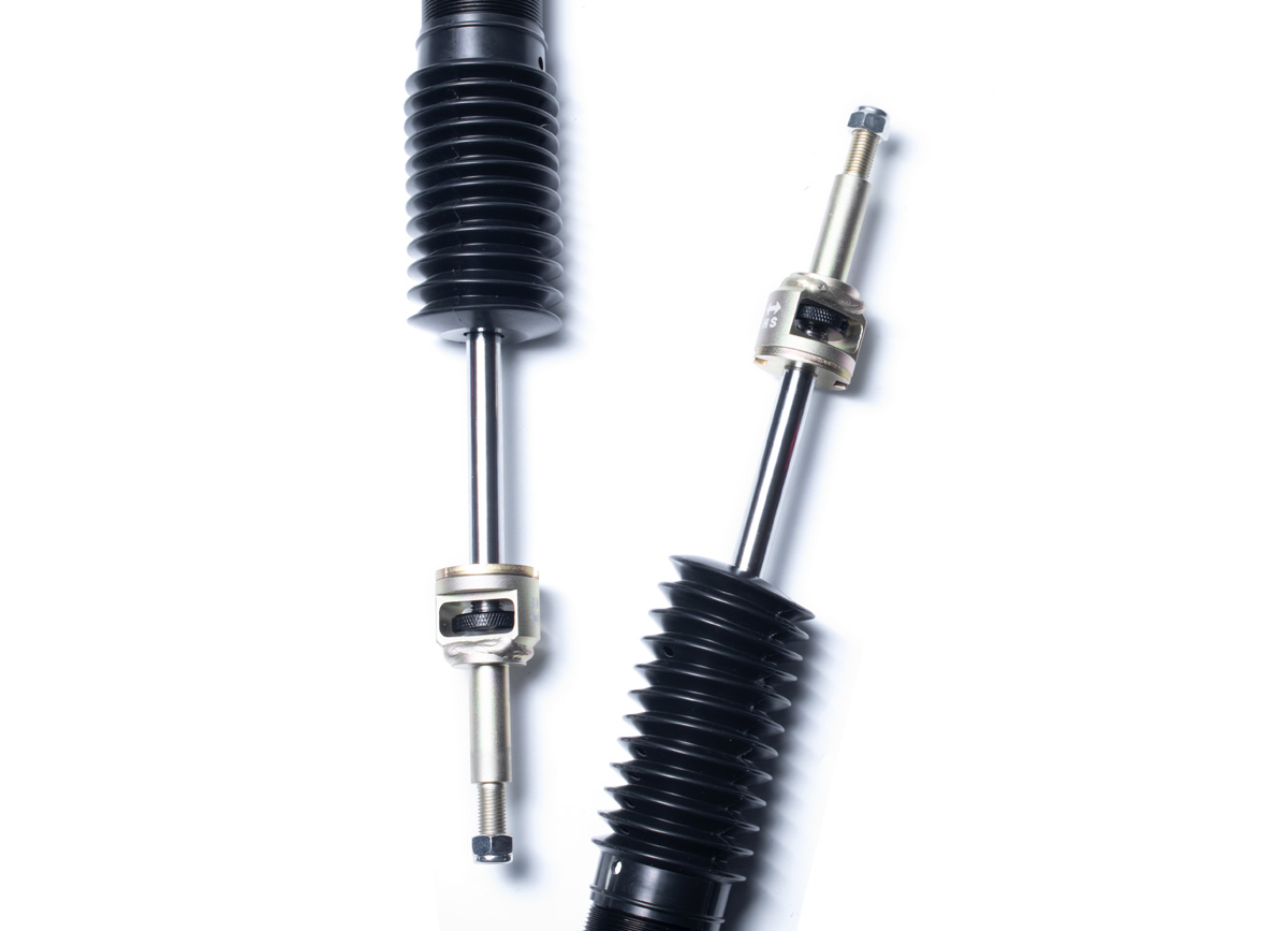 Výška se nastavuje šroubováním celého těla tlumiče, aniž by docházelo ke zkrácení dráhy tlumení nebo změně předpětí pružiny. Rozsah snížení se liší podle typu vozu – od téměř sériové výšky až po extrémní snížení nevhodné pro běžný silniční provoz. - Nastavení tuhosti