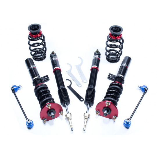 Výška se nastavuje šroubováním celého těla tlumiče, aniž by docházelo ke zkrácení dráhy tlumení nebo změně předpětí pružiny. Rozsah snížení se liší podle typu vozu – od téměř sériové výšky až po extrémní snížení nevhodné pro běžný silniční provoz. - Nastavení tuhosti