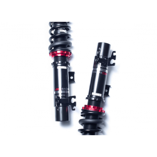 Výška se nastavuje šroubováním celého těla tlumiče, aniž by docházelo ke zkrácení dráhy tlumení nebo změně předpětí pružiny. Rozsah snížení se liší podle typu vozu – od téměř sériové výšky až po extrémní snížení nevhodné pro běžný silniční provoz. - Nastavení tuhosti