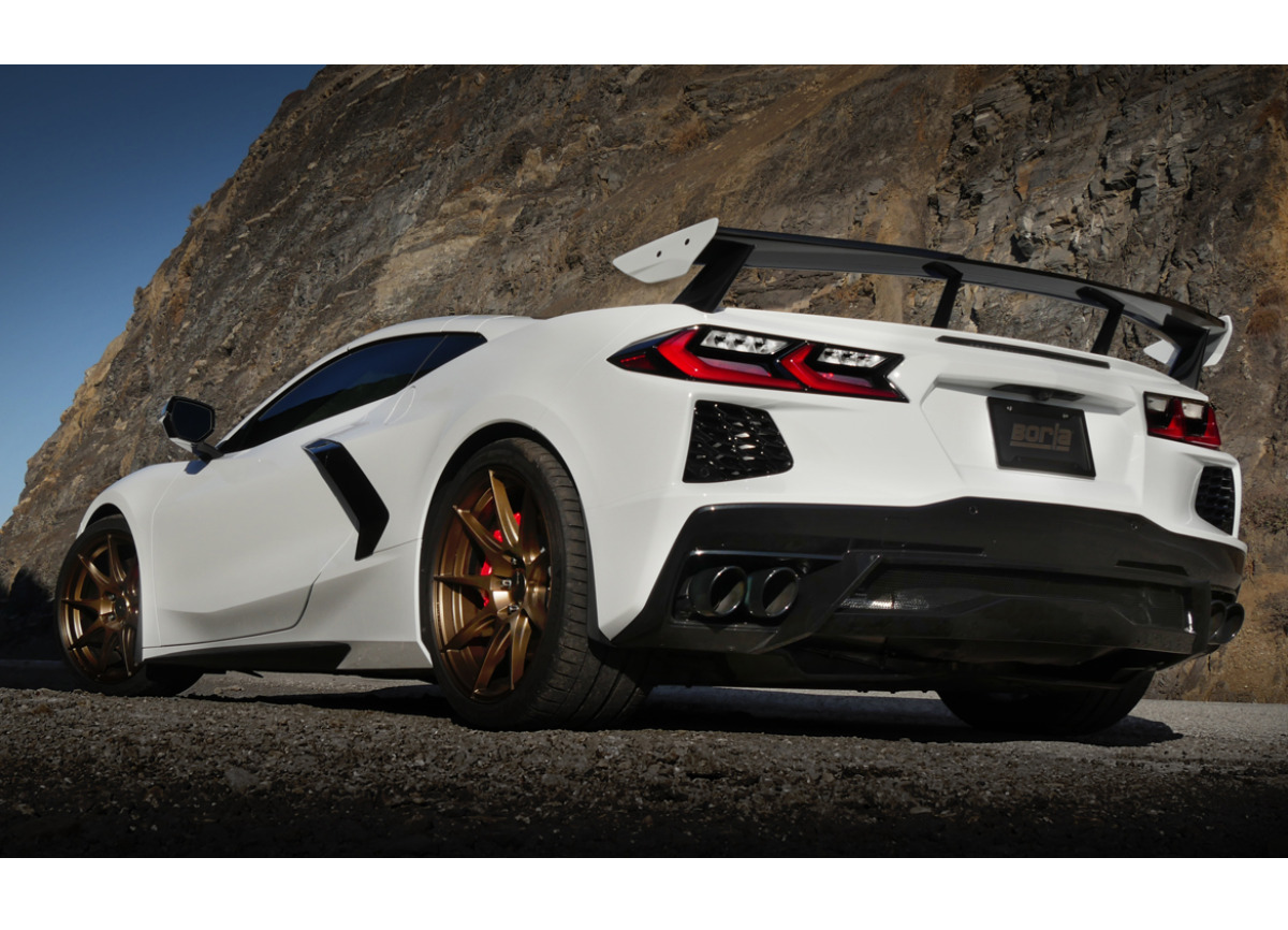 Borla Cat-Back "Atak" pro Chevrolet Corvette Stingray C8 6,2l V8, automat, RWD 2-dvéř., AFM (20'-21')/DFM (22'-24'), r.v. 2020-2024, typ koncovek: karbonové se světlými středy