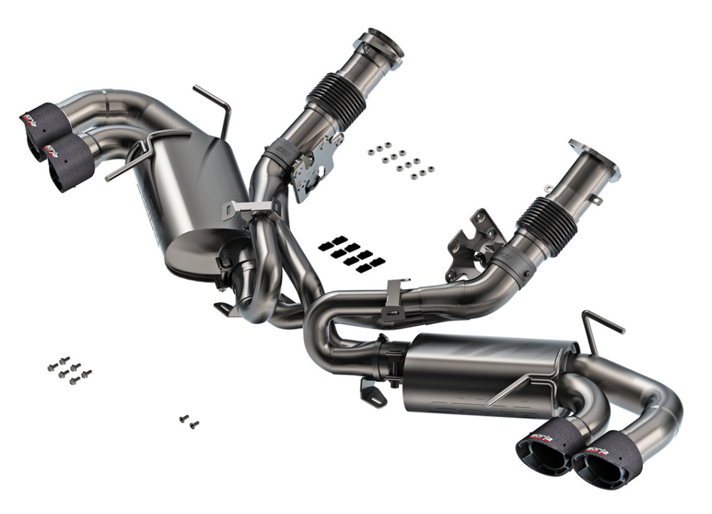 Borla Cat-Back "S-Type" pro Chevrolet Corvette Stingray C8 6,2l V8, automat, RWD 2-dvéř., AFM (20'-21')/DFM (22'-24'), r.v. 2020-2024, typ koncovek: karbonové se světlými středy