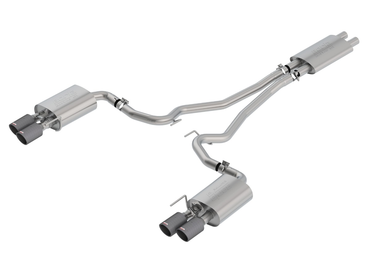 Borla Cat-Back výfukový systém "Touring" pro Ford Mustang GT 5,0l Coupe/Convertible RWD 2-dvéř. s "active valve exhaust" (s homologací ECE), r.v. 2018-2020, typ koncovek: černé
