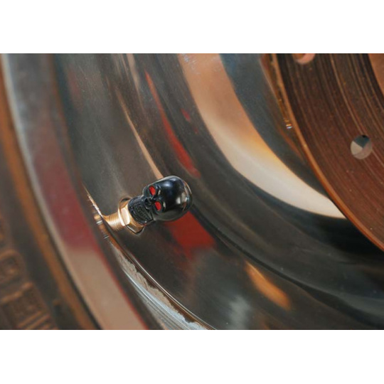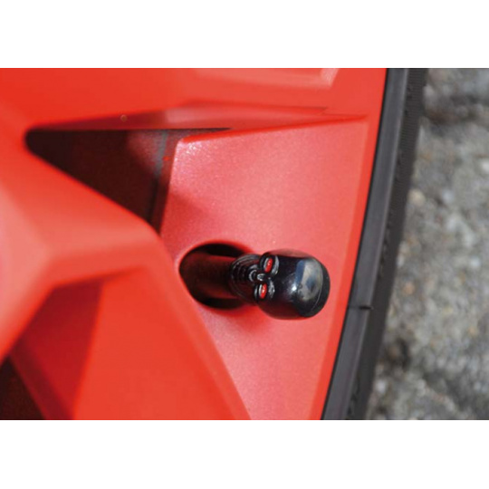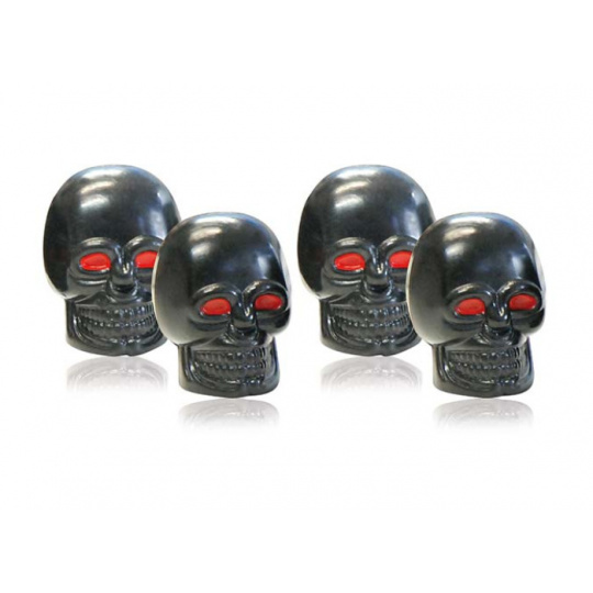Čepičky ventilků Foliatec - černé lebky s červenýma očima