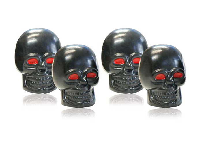 Čepičky ventilků Foliatec - černé lebky s červenýma očima