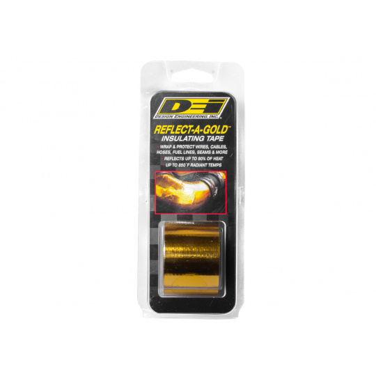 Samolepicí tepelně izolační zlatá páska DEi Design Engineering Reflect-A-GOLD je zlatě metalizovaná tkanina na bázi skelných vláken vhodná pro použití v extrémních podmínkách. Je extrémně lehká a snadná pro aplikaci. Hodí se ideálně na zakrytí požárních příček, boxů vzduchového filtru, krytů motoru a dalších částí. Balení obsahuje roli zlaté pásky o rozměru 38 mm x 4,5 m, kterou je možné jednoduše upravit na požadovaný rozměr nožem nebo nůžkami.