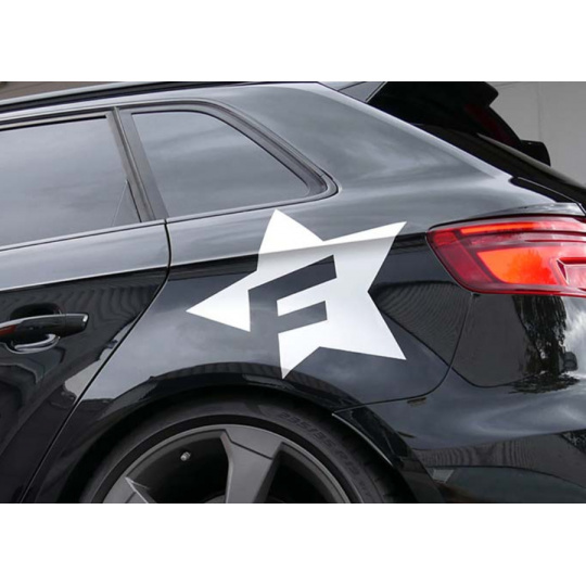 Designový polep FOLIATEC – motiv F-STAR je stylovým doplňkem pro boční část vozu. Samolepka je vyrobena z odolné fólie určené pro venkovní použití, snadno se aplikuje a zvládne i mytí pod tlakem.